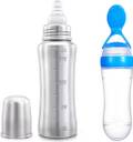 Babylib Stainless Steel Baby Milk Bottle, With Silicon Spoon Feeder Bottle 90 ml - 250 ml (Silver, Multicolor)
