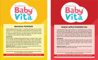 Babyvita brings you a combo of cereals for your baby. The combo consists of a wheat-apple mix and a banana powder mix. It is an ideal food preparation for babies who are over six months of age. There is a delicious blend of highly nutritious ingredients that your baby can enjoy and snack on. The dehydration method used to prepare the food is unique and preserves all the nutritive benefits of the food ingredients used.