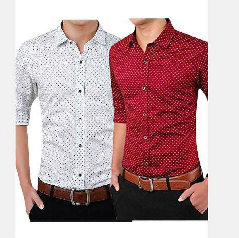 Men Slim Fit Self Design Casual Shirt (Pack of 2)