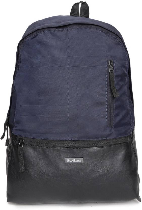 This spacious Blue & Black (Unisex) Colourblocked Laptop Backpack from BAD HABIT Perfect medium size bag with zip closure perfect for use.