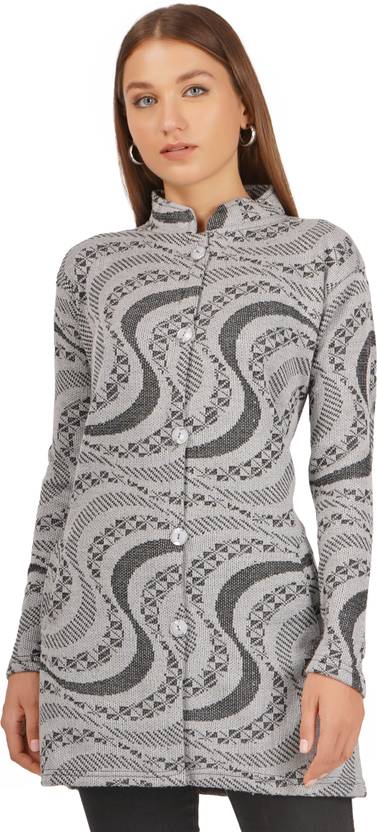 BADOS Self Design Mandarin Neck Casual Women Grey Sweater
