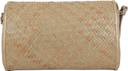 The beauty of the intertwined cane! This gorgeous barrel bag is a classic masterpiece with a metallic zipper closure and an exterior crafted with cane. This bag has its own style & charm that's contagious!