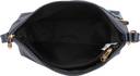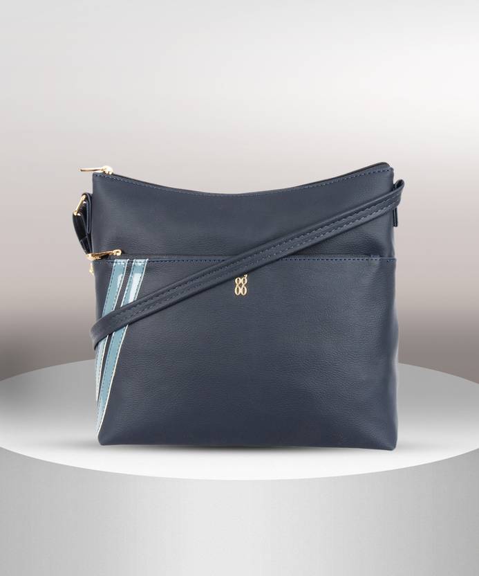 This grain textured sling bag has two glossy patent contrast stripe like trims that gives it a hint of athleisure appeal. The outer zipper and the spacious interior makes it high on convenience in addition to it being absolutely stylish.