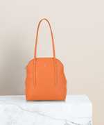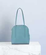 The bowling bag is a semi circular bag medium sized bag with two top handles that slip over the forearm up until the elbow. The contemporary version may also have a long strap to carry it like a sling. It's a spacious bag with a broad base since it was originally meant to carry bowling equipment.