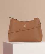 Chic and simple, this everyday sling bag features subtle grain texture, gold logo with a patch design and a quick access interior. Dump your basic essentials and add comfort to your daily expeditions.