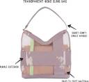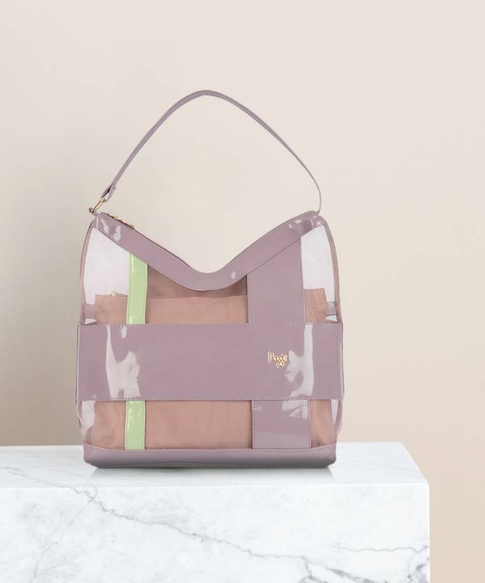 See-through bags are trending and this beautiful bag has a lovely combination of transparent and patent materials blending well together. This hobo style tote is perfect for resort and beach wear.