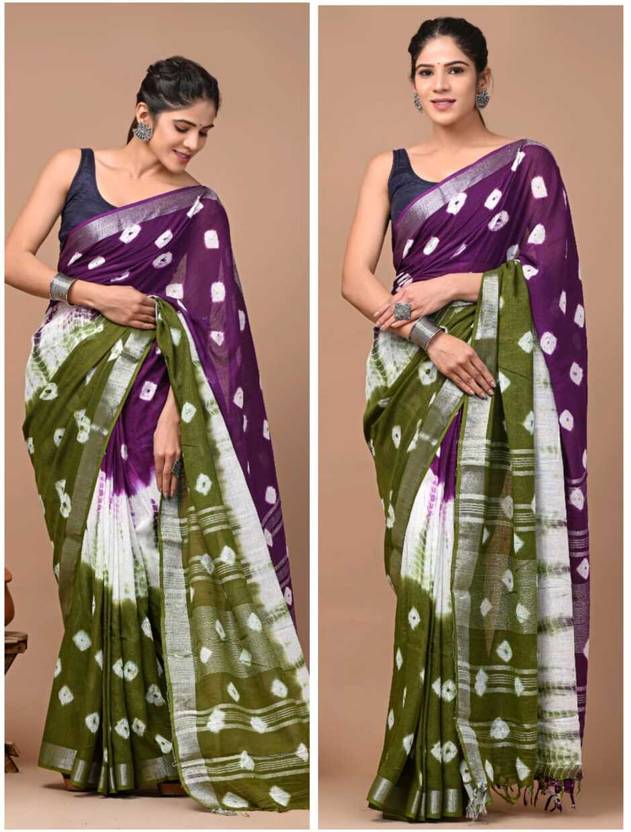 Hand Painted Kalamkari Cotton Linen Saree (Multicolor)