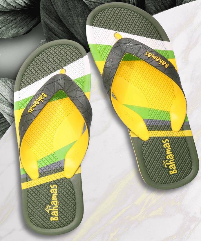 BAHAMAS Men Flip Flops (Olive, Yellow , 7)