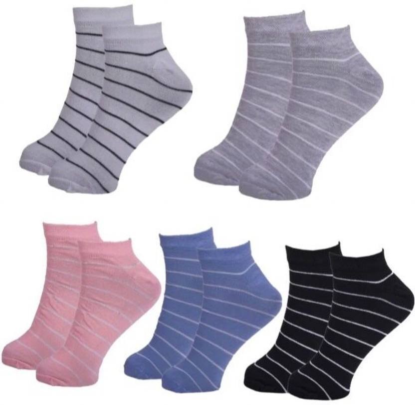 Step up your style and comfortable with the bahuzo Men & Women Self Design Ankle Length Socks. This versatile pack of 5 features a mix of solid colors, stripes, and playful prints, making them perfect for any casual occasion.
