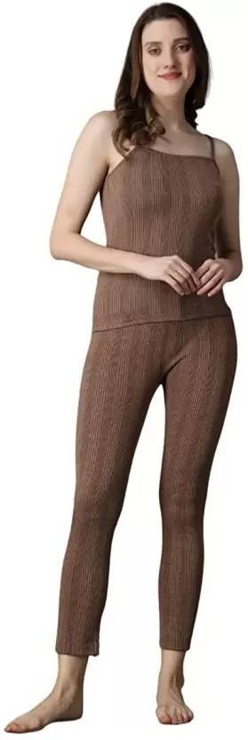 bAIRSTOW Winter Thermal Set with Fleece Lined Soft Warmer Women Top - Pyjama Set Thermal