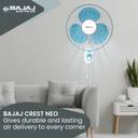 BAJAJ CREST NEO 400MM FIJI BLUE WALL FAN with 2 Year Warranty 400 mm Wall Fan (Fiji Blue & White | Pack of 1)