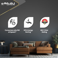 This ceiling fan boasts significant energy-saving features, cutting your power consumption dramatically. With a power consumption of only 26 W, it saves up to 65 per cent more energy. It only consumes 6W at speed 1. Offering a high service value, this fan ensures effective airflow without raising electricity bills substantially, making it a practical choice for households aiming to reduce carbon footprint.
