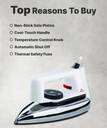 Sporting a lightweight build, this iron is designed for comfortable, prolonged use. The cool-touch handle ensures a secure and comfortable grip, reducing hand fatigue during extended ironing sessions. Thanks to its Teflon-coated soleplate, this iron glides smoothly over various fabrics, minimising friction and preventing snagging. And, its up to 180-degree swivel cord allows free movement in all directions, offering flexibility and easy movement around buttons and seams. With an inbuilt thermal safety fuse, it also provides added protection, ensuring worry-free usage.