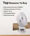 BAJAJ Pygmy Mini Personal Fan USB Rechargeable with 2 Year Warranty Ultra High Speed 110 mm Table Fan (1 Star | White | Pack of 1)