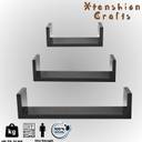Baksh Bros Xtenshion Craft U-Wall Shelve Materiel Rust Proof Well Shelve_S20 Wooden Wall Shelf (Number of Shelves - 3, Black)
