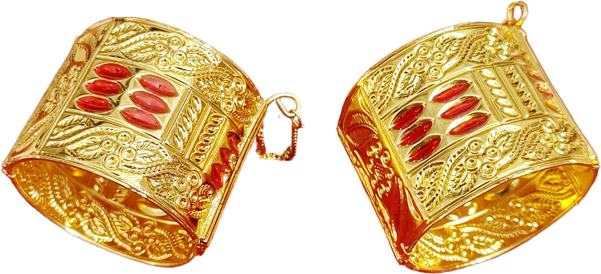 This is assamese traditionaljewellery.gamkharu / muthi kharu assamese traditional jewellery has aunique style statement. Lt is made by skillfull jewellery makers various part of assam.the design is very unique and carry a glamor or tradition and culture. Size;2.2,2.4,2.6,2.8. Balaji gold assamese traditional jewellery made for wedding ,festivels,traditional events where woman can dress up and look their best. Keep the ornaments away water or too much perfume.advisable to store in pouches or jewellery boxes.