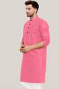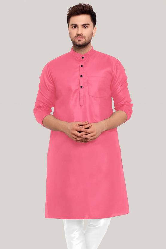 balajiis Men Solid Cotton Blend Straight Kurta  (Pink)