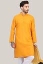 balajiis Men Solid Cotton Blend Straight Kurta  (Yellow)