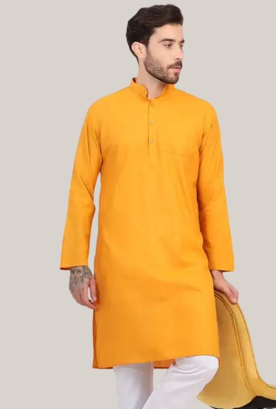 Upgrade your ethnic wardrobe with this Men’s Plain Cotton Blend Kurta, designed for comfort, simplicity, and everyday elegance. Crafted from a soft and breathable cotton blend fabric, this kurta keeps you cool and comfortable throughout the day. The solid plain design gives a clean and classy look, making it suitable for daily wear, office wear, festive occasions, and casual outings. Featuring a straight fit and regular length, it pairs perfectly with pyjamas, churidar, jeans, or trousers. Ideal for summer and all-season wear, this kurta offers easy maintenance, durability, and timeless style for the modern man. ⭐ Key Highlights / Bullet Points ✔ Fabric: Premium Cotton Blend ✔ Pattern: Solid / Plain ✔ Fit: Regular Fit ✔ Style: Straight Kurta ✔ Sleeve: Full Sleeve ✔ Neck: Mandarin / Chinese Collar ✔ Length: Knee Length ✔ Occasion: Casual, Festive, Daily Wear, Office Wear ✔ Wash Care: Machine Wash / Hand Wash ✔ Comfortable & Breathable Fabric