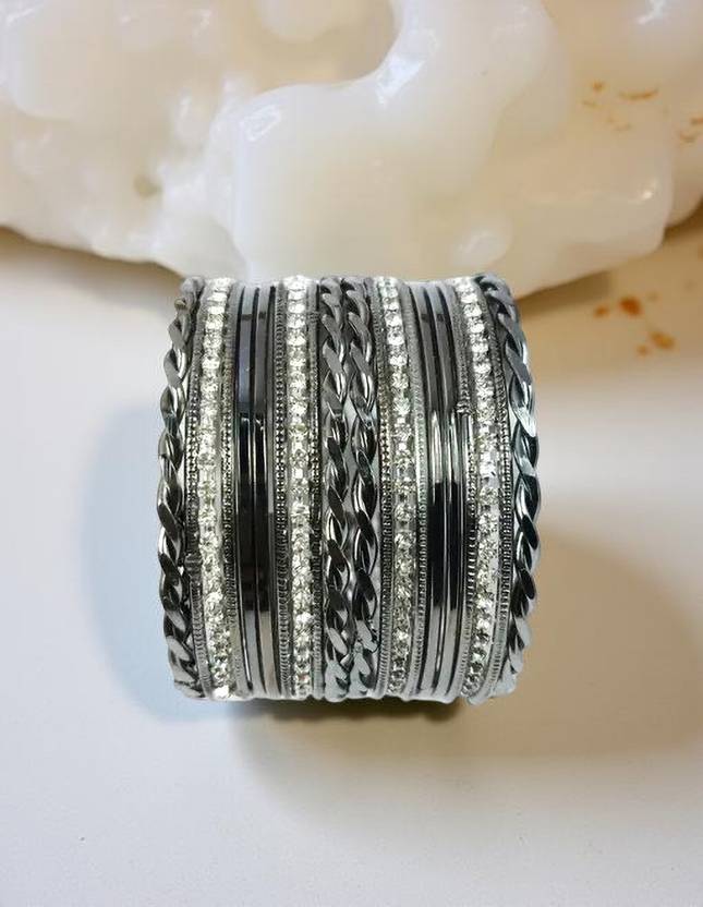 Balasundri Alloy Rhinestone Silver Bangle Set (Pack of 20)