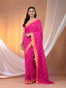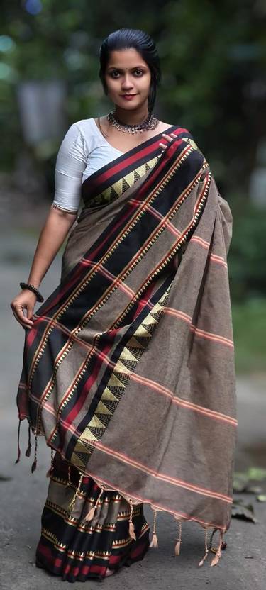 Balika bodhu Self Design Handloom Pure Cotton Saree (Brown)