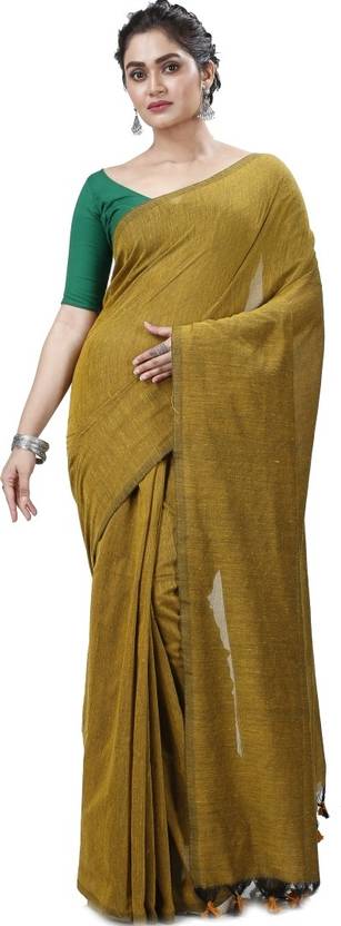 TheBongFashion Woven, Self Design, Solid/Plain Jamdani Cotton Silk Saree (Yellow)