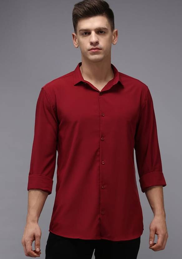 Men Regular Fit Solid Cut Away Collar Casual Shirt