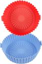 Package Content - Air Fryer Liners I Material: Silicone I Color: Multicolor I Shape: Round I Size: top diameter: 8 inches, bottom diameter: 6.5 inches; height: 2.4 inches and Top 6.5 inches / Bottom 5.5 inches/ Height 1.8 inches.I Raised lines on the base allows proper and even circulation of heat. Safe to be used in oven, microwave, freezer and dishwasher I 3D drainage groove, which facilities the oil to flow to the edge groove and the food tastes more delicious.