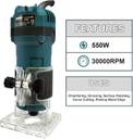 Ballorex KS-T036 550W 30000 RPM Heavy Duty Professional Wood Trimmer/Router machine with 6-Pcs Different Shaped 6.35 mm Router Bit Set, 6mm, 8mm and 6.35mm Collets Rotary Tool (6.35 mm)