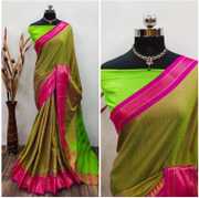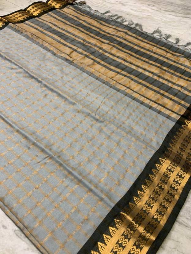 Gold-toned and silver-toned saree Solid saree with embellished border Has beads and stones detail The saree comes with an unstitched blouse piece The blouse worn by the model might be for modelling purpose only. Check the image of the blouse piece to understand how the actual blouse piece looks like. Size & Fit Length: 5.5 metres plus 0.8 metre blouse piece Width: 1.06 metres (approx.) Material & Care Saree Fabric: Silk Blend Blouse Fabric: Silk Blend Dry Clean