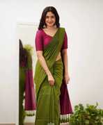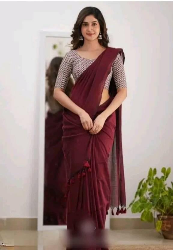Balorampal Solid/Plain Handloom Pure Cotton Saree (Red)