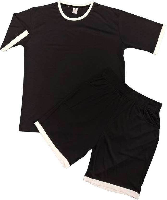 BALUDAENTEPRISE Men Solid Black Top & Shorts Set