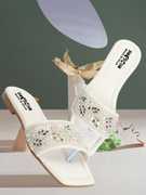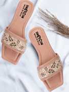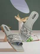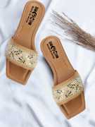 The upper part of these exquisite sandals features a wide band embellished with intricate floral and leaf embroidery. This beautiful design is further enhanced with delicate sequins and beads that catch the light, adding a touch of sparkle and sophistication. Whether you're attending a casual daytime event or a more formal evening affair, these sandals will elevate your outfit with their unique and eye-catching designs.