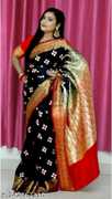 Banaras silk palace Embroidered, Woven Banarasi Silk Blend Saree (Black)