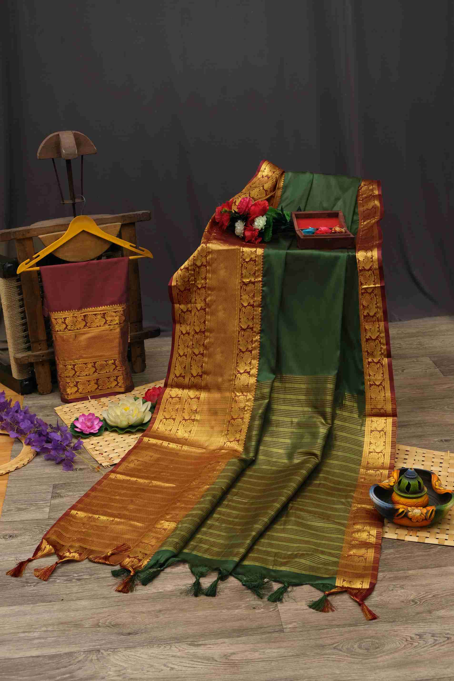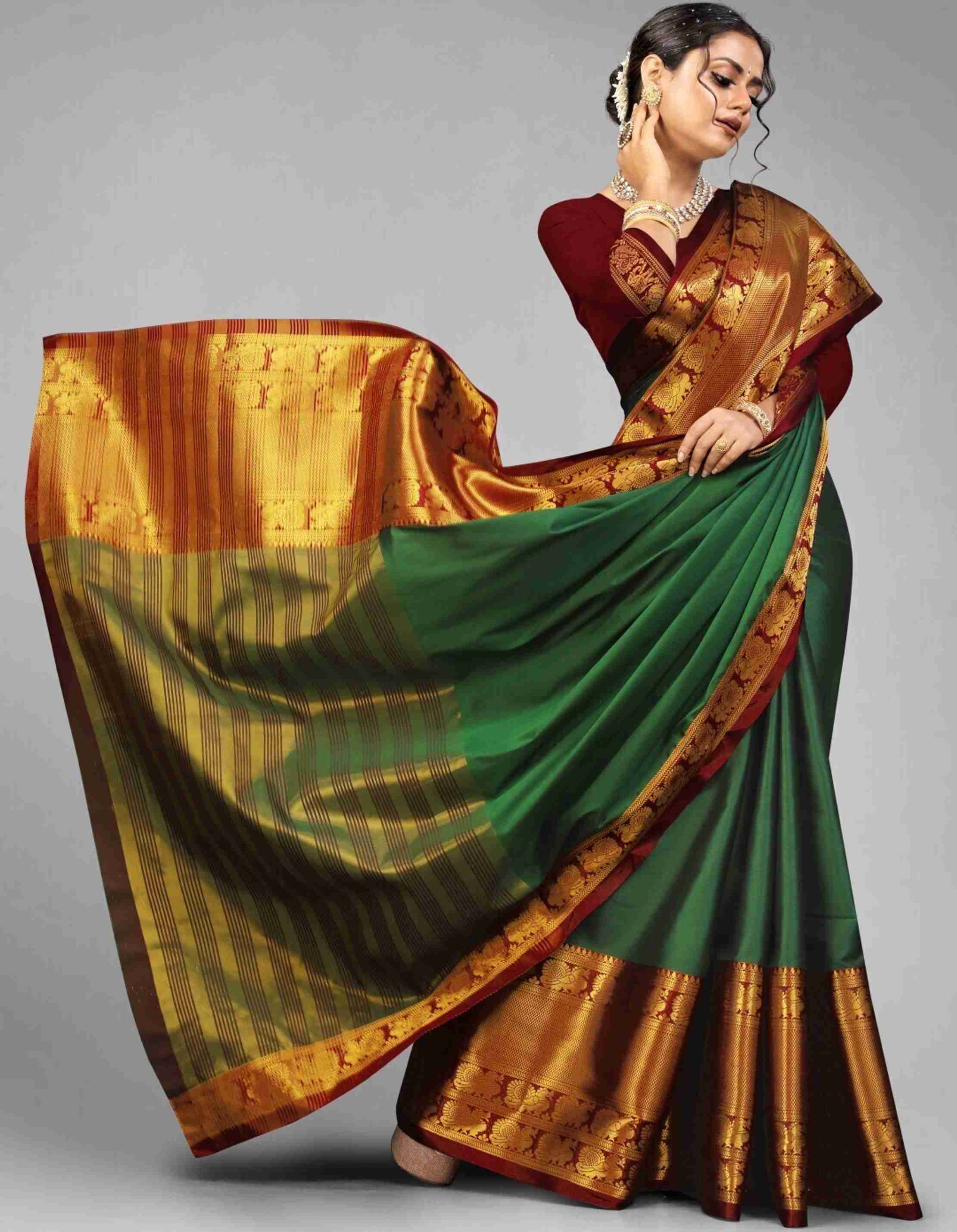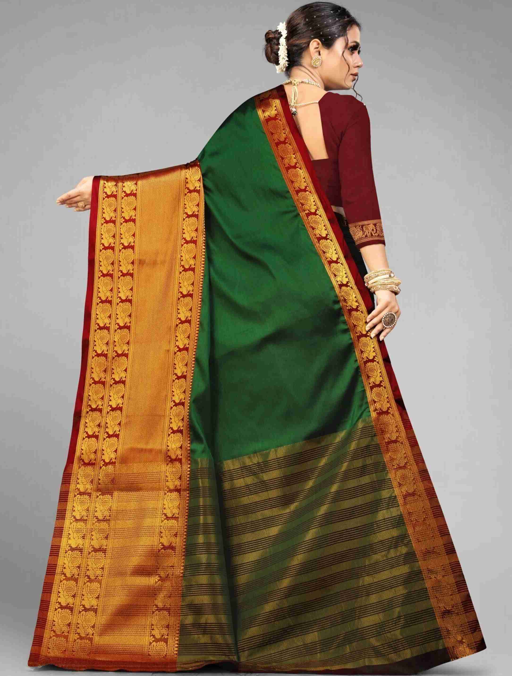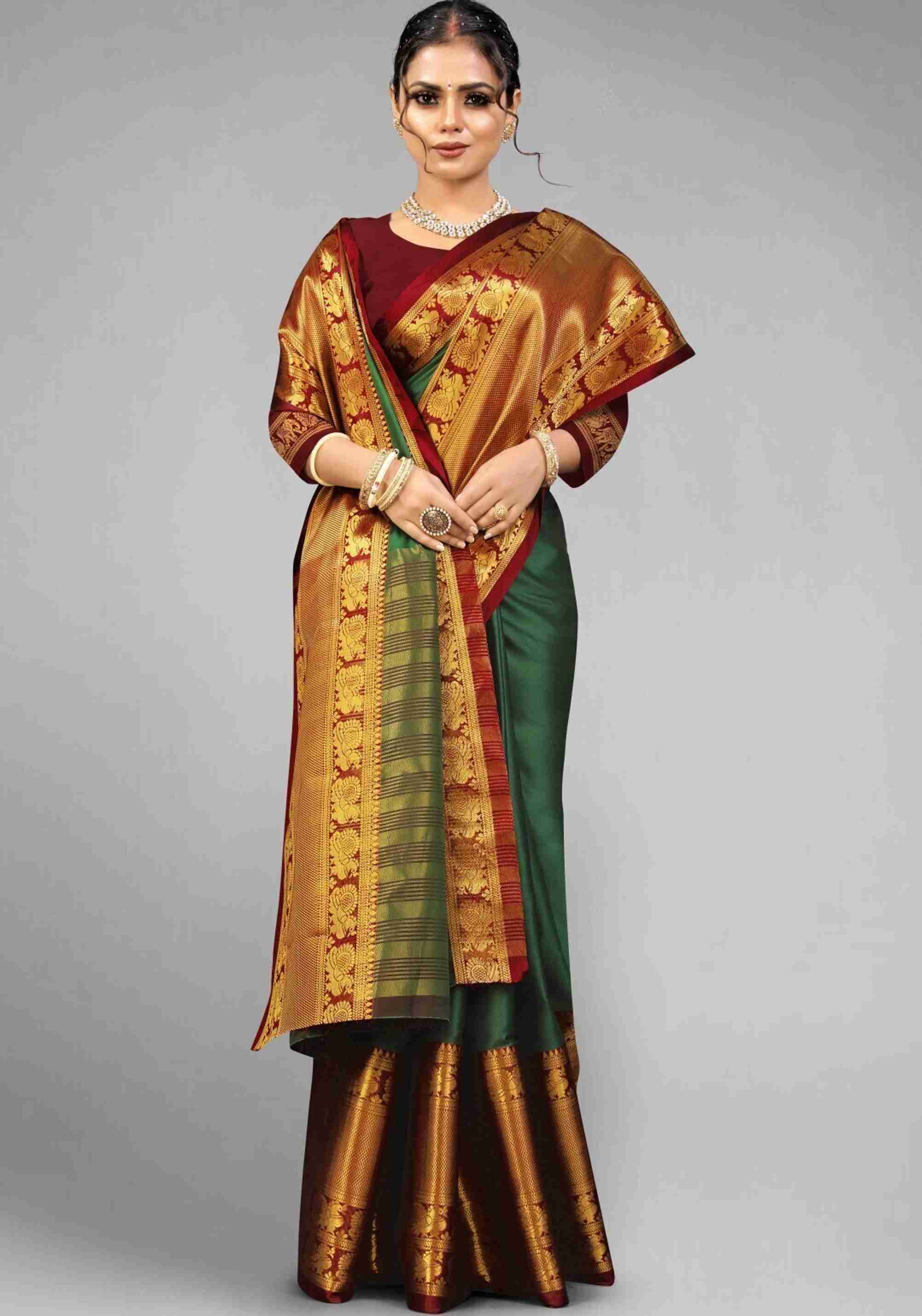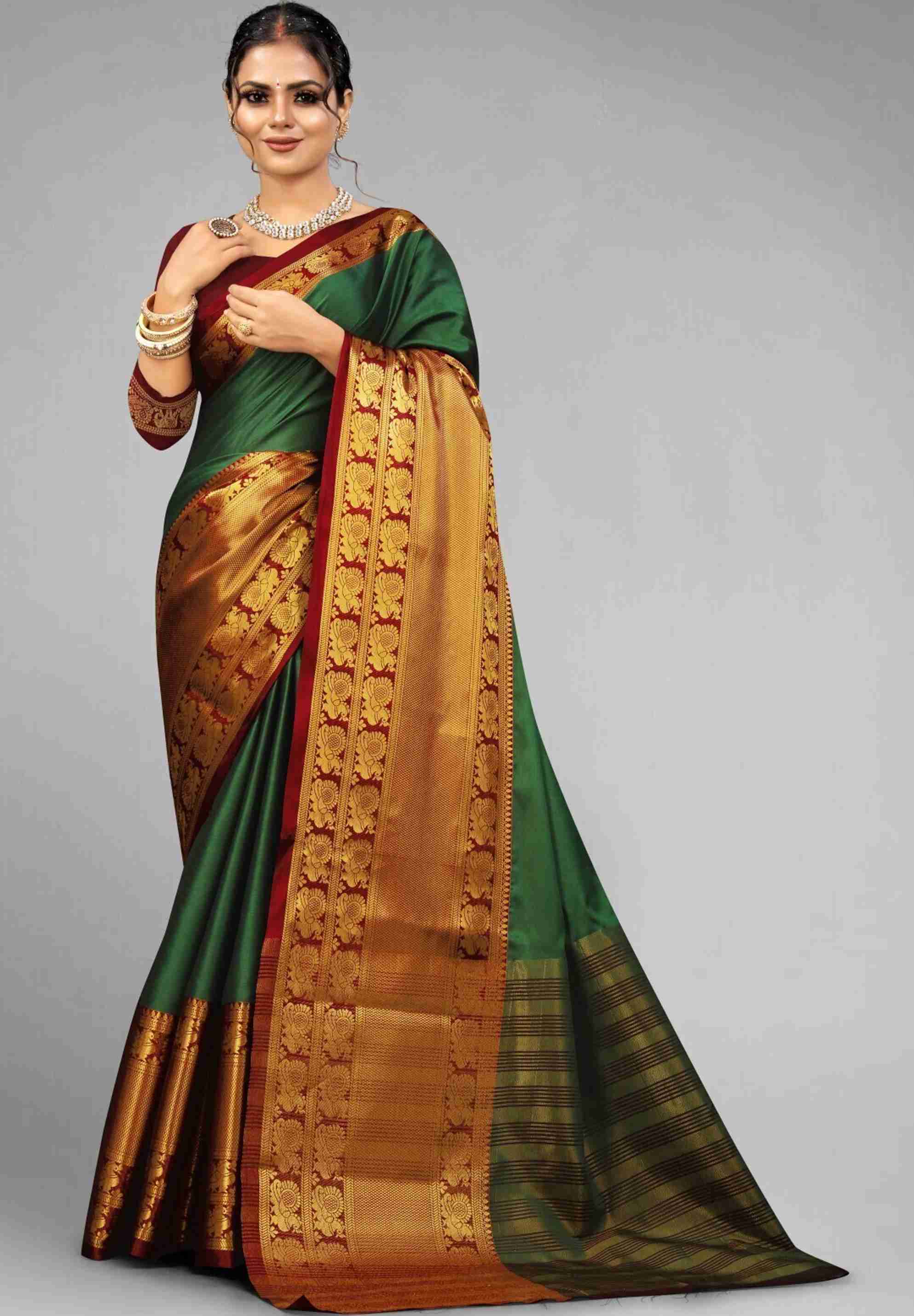 Introducing the stunning Women's Narayan Pattu Banarasi Silk Saree in a beautiful shade of green, perfect for any occasion. Crafted with the utmost care and precision, this saree boasts a luxurious fe...more