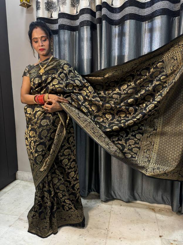 Woven Banarasi Silk Blend Saree (Black)