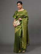 Banaras silk palace Woven Banarasi Pure Silk Saree (Dark Green)