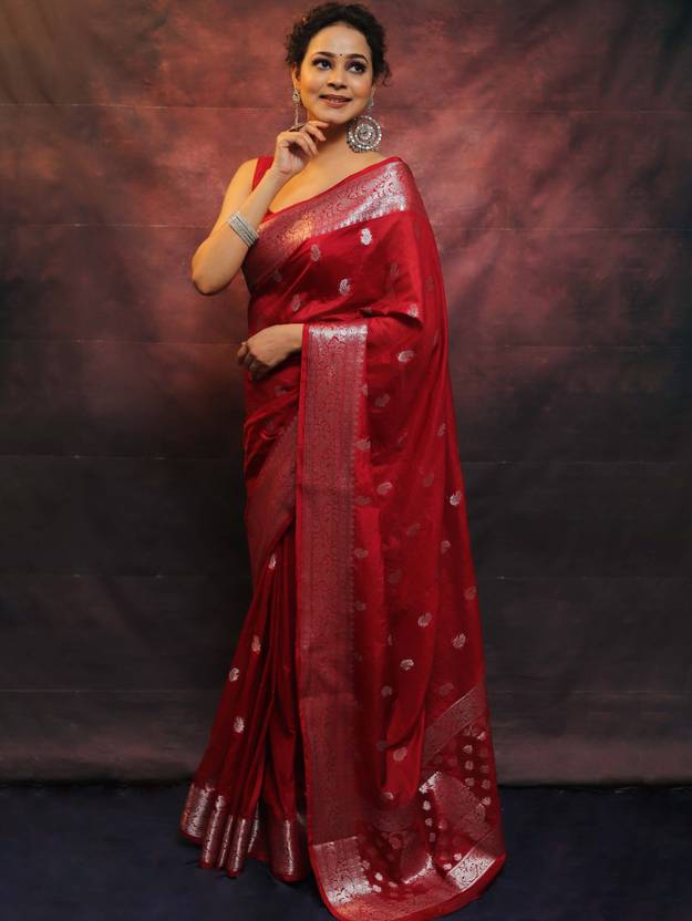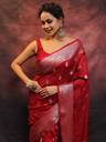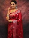 Drape yourself in the ultimate Banarasee luxury, this Semi-Chiffon displays beautiful intricate Zari work across the body and pallu to embellish the subtle beauty. You can't help but fall in love with the work of art.
