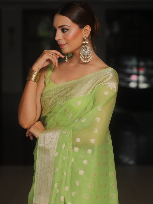 Banarasee Woven Banarasi Cotton Silk Saree (Green)