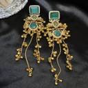 Elevate your ethnic look with these stunning Kashmiri-style traditional earrings. Designed with intricate gold plating, ruby red beads, kundan stones, and pearl hangings, these earrings perfectly blend heritage craftsmanship with timeless elegance. The beautiful chandbali design makes it an ideal accessory for weddings, parties, and festive occasions.Crafted for women who love a royal touch, these earrings are lightweight, durable, and comfortable for long wear. Pair them with sarees, lehengas, or salwar suits to complete your Kashmiri-inspired ethnic look.