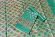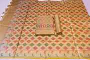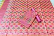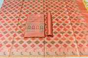 Make a bold and beautiful statement with this Banarasi Cotton Silk Suit adorned with rich zari butti weaving. The luxurious red fabric showcases the timeless charm of Banarasi craftsmanship, featuring delicate gold zari motifs that enhance its regal appeal. Crafted from a premium blend of cotton and silk, this unstitched 3-piece suit set offers the perfect balance of comfort and elegance. Whether for festive occasions, weddings, or traditional celebrations, this ensemble is designed to reflect heritage with sophistication.