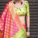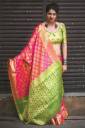 LeeliPeeri Designer Banarasi Silk Blend Saree with Unstitched Blouse (Pink, Green)
