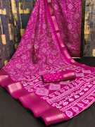 Bandhanivilla Printed Bandhani Cotton Silk Saree (Orange)