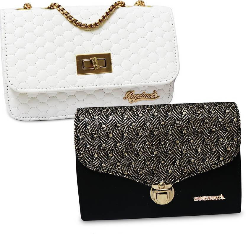 Black, White Women Sling Bag - Medium BLACK AND WHITE SLING COMBO BEST SELLING (Pack of 2)