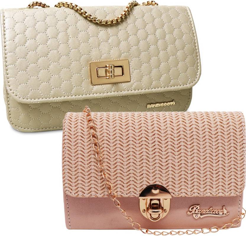 BANDICOOT Gold, Gold Sling Bag WWF Quotorze Cross body Chain Sling bag - Gold & Gold (Pack of 2)