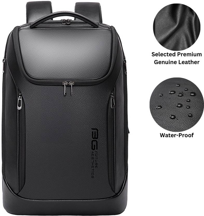 Medium 30 L Laptop Backpack BG-6623 Genuine LEATHER anti theft backpack 16in Super Light with USB Port (Black)