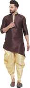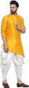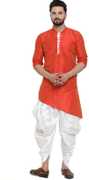 Wearing this kurta and dhoti will lend you an ethnic and cultural look that you can flaunt at festive events and weddings.