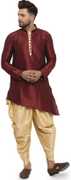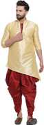 As the kurta is made from art silk and the dhoti is made from silk, this set offers immense comfort and is lightweight. Also, its flowy look adds a touch of charm and sophistication to your overall look. So, you can wear this set throughout the day and even enjoy dancing and participating in the event.