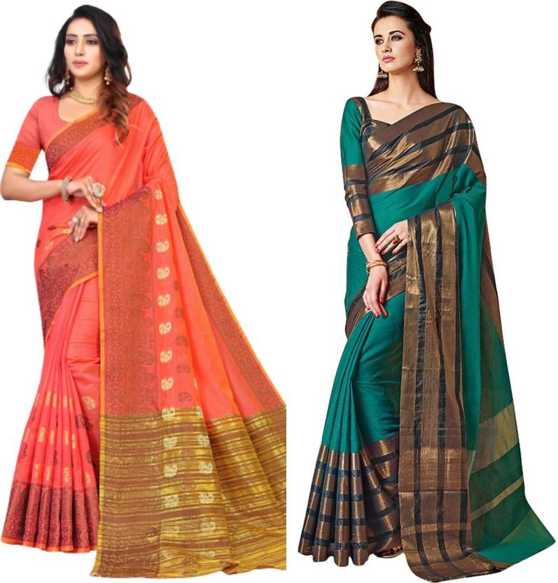 This Multi-Colour Combo offer Saree has Solid Pattern With Striped Style. We offer High Quality Range of Printed Sarees that is Designed by our team of Creative Professionals and at the same time perfect mix of modern patterns and contemporary designs of ethnic collection. This saree is crafted with Cotton Blend fabric, which is further enriched with beautiful Striped Woven that makes you look awesome and stunningly beautiful in this lovely sari that is decorated with intricately Lace Border. Matching unstitched Art Silk Blouse Piece, which can be stitched as per your choice & requirement that add the glam. There might be colour variation due to screen resolution and digital photography. This sari is an ideal for Occasions like casual, traditional, party wear, festival, wedding.