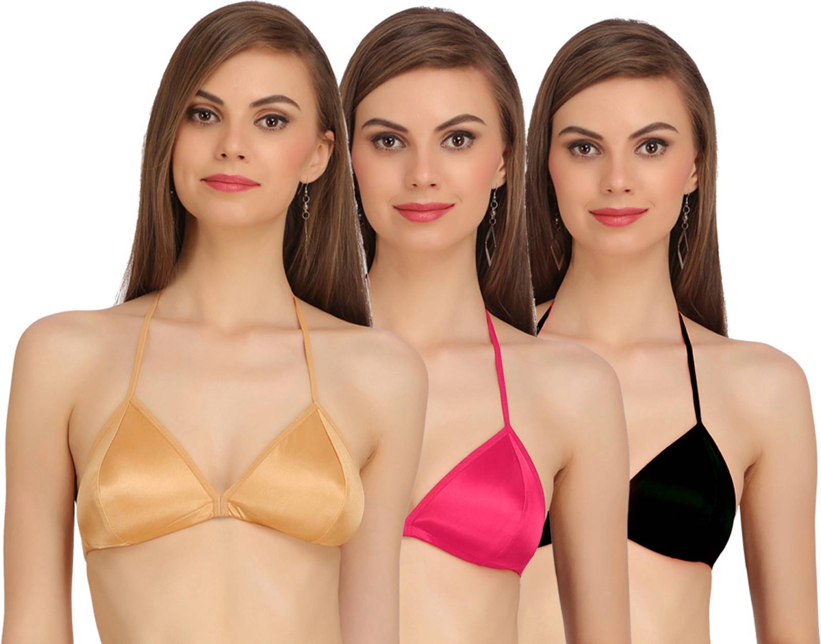Arousy by Seamed Transparent Back Sexy Girl's Bra Wirefree Bra Medium Coverage Bra for Women Satin Sexy Bra Swim Wear Bra Pack of 4